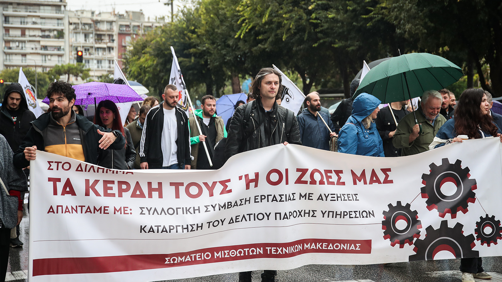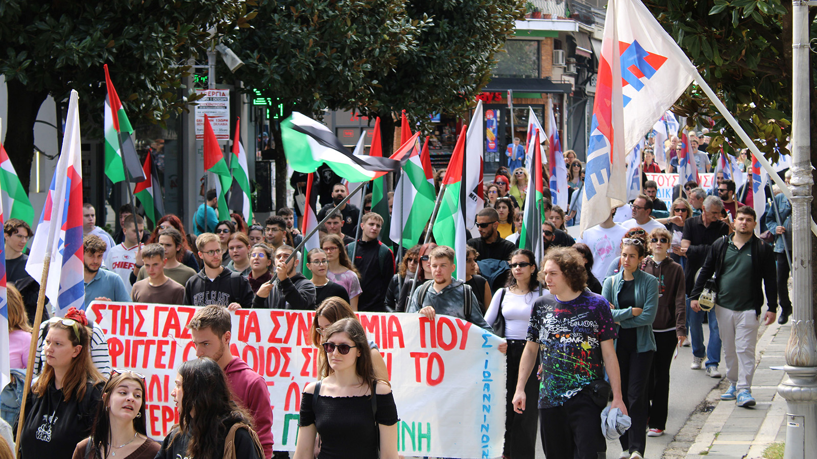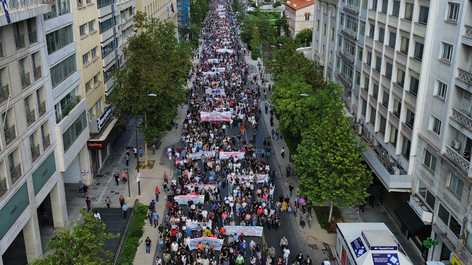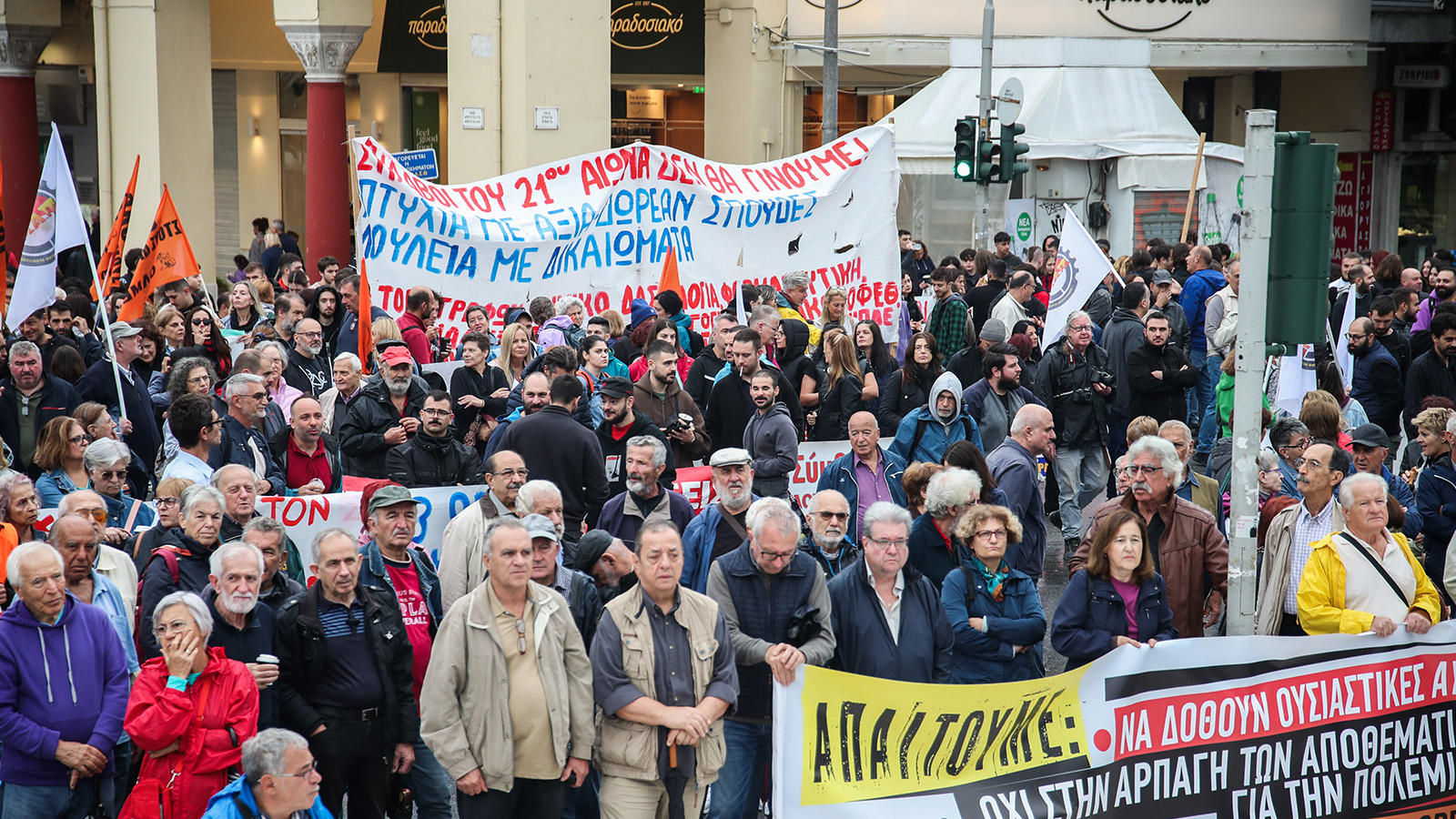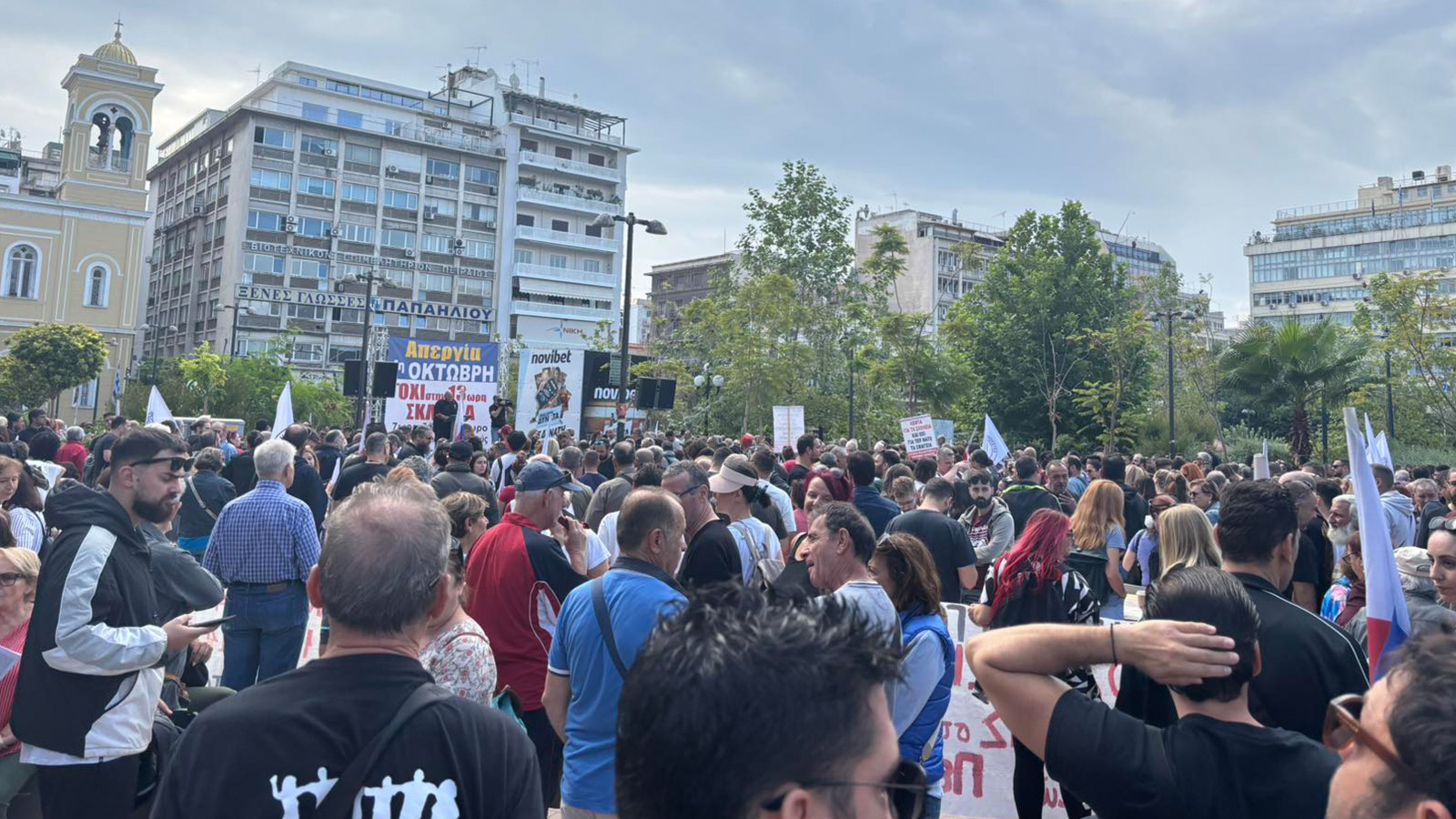 В изявлението си Общоработническият боеви фронт (ПAME) заявяви „Масовото участие на трудещите се в стачката и митингите свидетелства за натрупания гняв срещу антинародната политика като цяло, която превърна работните места в смъртниарени. Те са обезпокоени също и от поскъпването на живота, което поглъщасемейните доходи, но и за здравеопазването, което се превърна в скъпа стока, за образованието, където има сериозен недостиг на учители през новата учебна година, и непоносимите разходи за образование на нашите деца. Те са обезпокоени и от оскъдните пенсии, които са недостатъчни за достоен живот в напреднала възраст. Стачкуващите изразиха недоволството си от участието на страната ни в кървавите империалистически войни, както и от подкрепата на гръцкото правителство за касапина Нетаняху и държавата-убиец Израел, която извършва геноцид срещу палестинския народ. Те изразиха масово недоволството си от увеличаването на държавните военни разходи за нуждите на НАТО, както и от факта, че човешкият живот не се взема предвид, счита се за разходен, както показва железопътното престъпление в Темпи, трагедията с 57 убити, предимно млади хора”.