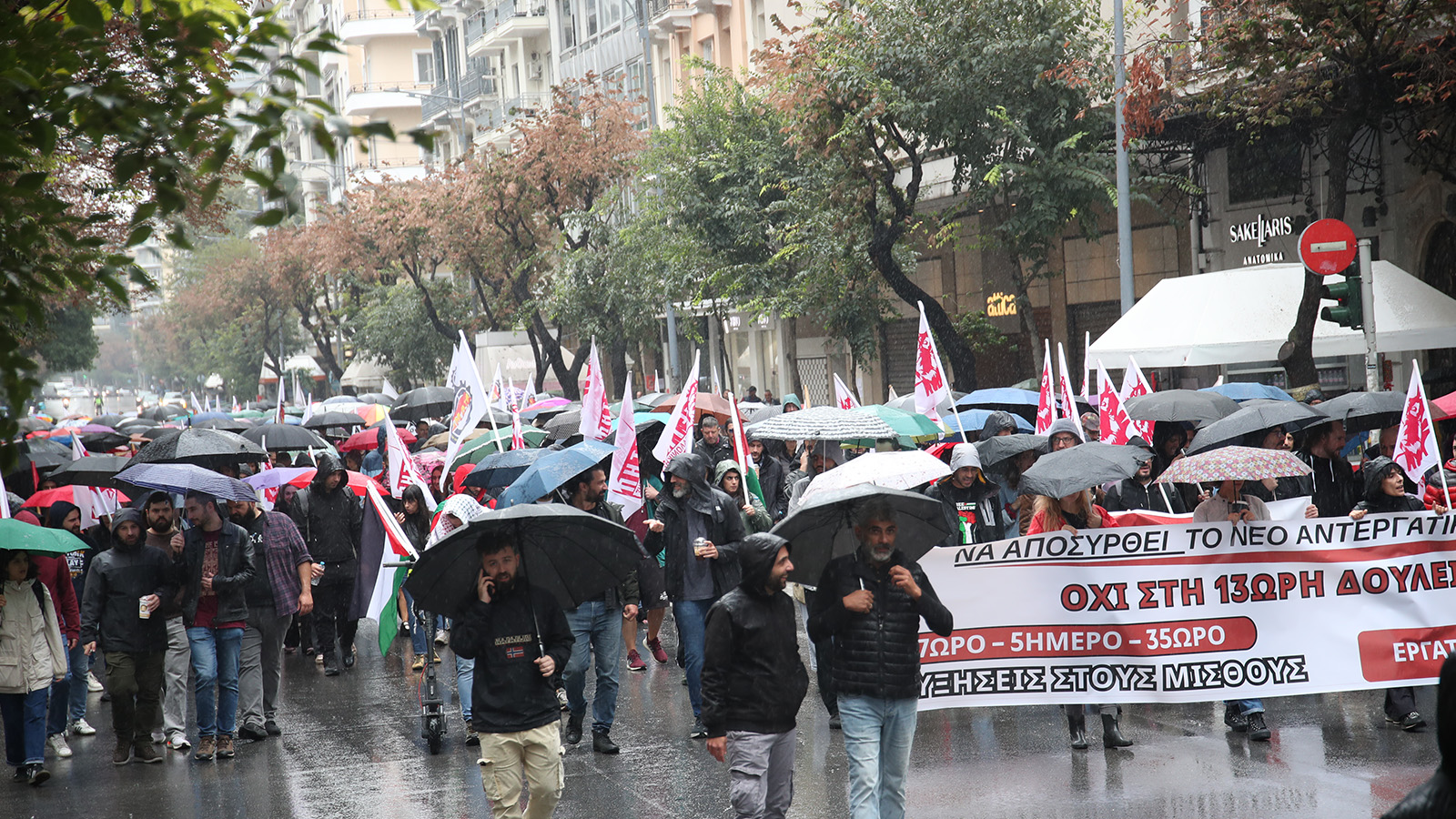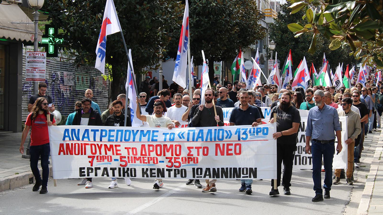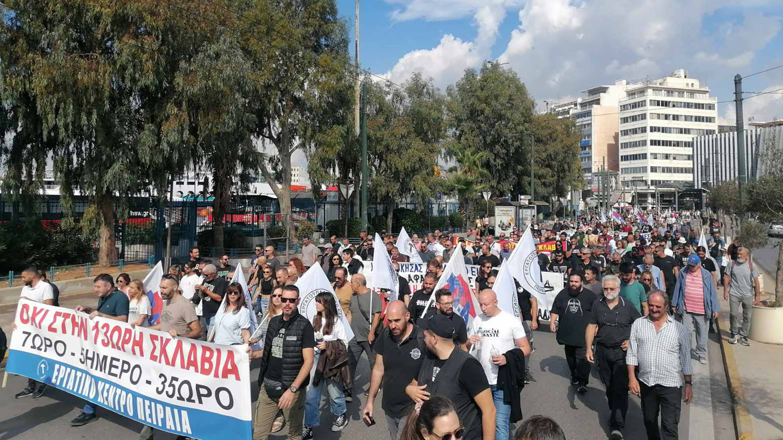 „Днес работническата класа на Гърция води сериозна борба за работно време и не става въпрос само за отмяна на този срамен законопроект за 13-часов работен ден, прокаран от правителството, не просто за изхвърлянето му в кофата за боклук. Дискусиите по този въпрос, които вече са започналипо работните места се разширяваат, нужна е борба за това как трябва да живеем през 21-ви век, в епохата на големите научни открития и прогрес,на развитието на изкуственния интелект, за по-кратко работно време, за седемчасов работен ден, петдневна работна седмица и 35-часова работна седмица, за да имат хората повече свободно време за културен отдих, за спорт, за да могат родителите да виждат децата си, да участват в обществените дела, за да могат широките народни маси да задоволят всички свои съвременни нужди и потребности, за новото общество. Тази стачна борба днес е само началото“.