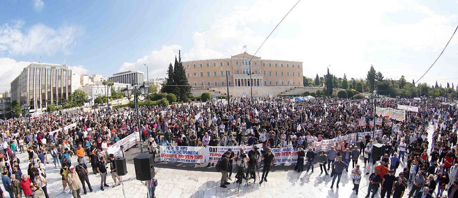 В Атина, след стачния митинг, се проведе голямо шествие до сградата на гръцкия парламент. Гъст поток от хора изпълни централните улици на Атина, заявявайки, че работниците не са машини, а хора, и че няма да приемат варварството и законопроекта, изготвен в съответствие с директивите на Европейския Съюз, изискващ 11-часова почивка между две работни смени, което означава 13-часов работен ден.