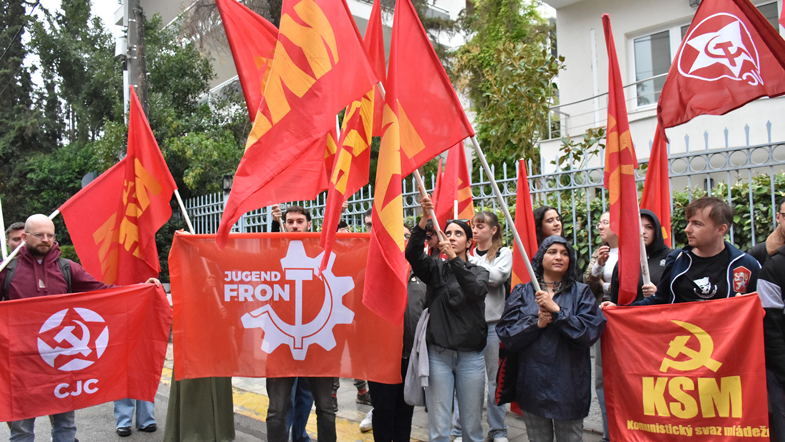 «Мы собрались сегодня здесь у здания посольства Польши в Афинах, чтобы осудить новые преследования в отношении Коммунистической партии Польши со стороны Республики Польши и проинформировать об этом греческий народ, молодежь, а также народы всего мира. Сегодня, 29 сентября, коммунистические и рабочие партии со всего мира, а также делегации, молодежных организаций, участвовавших в 51-м фестивале КМГ и «Одигитис», собрались у польского посольства, чтобы осудить судебный процесс, который состоится 1 октября в Конституционном суде Польши, с целью запрета Коммунистической партии. Речь идет о неприемлемом, неисторическом судебном процессе, основанном на поправках, внесенных в Уголовный кодекс страны, приравнивающих социализм-коммунизм к его непримиримому врагу, фашизму-нацизму, согласно стандартам ЕС. Это не первый случай, когда наши польские товарищи подвергаются подобным преследованиям. Им отправлялись судебные извещения в связи с тем, что они выпускали свой журнал, участвовали и в этом году в первомайских митингах и якобы вывешивали «тоталитарные символы». Мы не позволим вводить запреты на деятельность коммунистических партий ни в Польше, ни где-либо еще. Мы выражаем боевую солидарность с нашими товарищами, которые борются против этих мер. Мы требуем отмены поправок в Уголовный кодекс, приравнивающих коммунизм к нацизму. Мы требуем прекращения преследований Коммунистической партии Польши, как это уже было сделано в прошлом. И в Польше угрозы не пройдут, руки прочь от коммунистов».