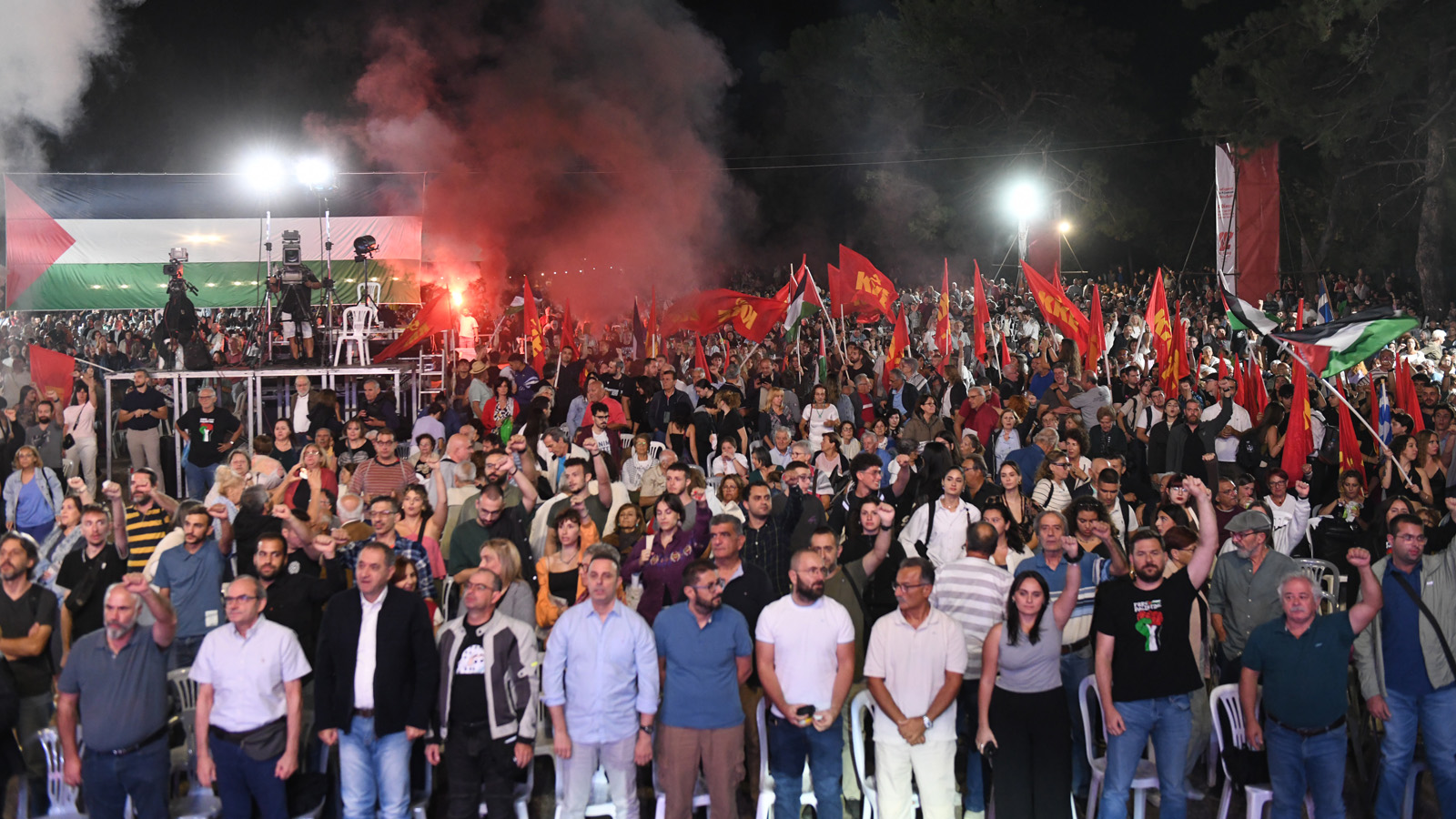 Особенно сейчас, когда на наших глазах целый народ, героический народ Палестины, страдает от зверств Израиля, сравнявшего с землей город Газа, самое время для активизации борьбы народа. Тот, кто хочет называться человеком, не может закрывать глаза на преступление, совершаемое убийцами государства Израиль при участии США и ЕС, которые поддерживают этот геноцид. (…) В чем преступление народа Палестины? В том, что он живет на своей земле и борется за свою независимую родину всеми средствами и с оружием в руках, на что он имеет полное право, как это делал греческий народ в своей истории. (…)Сейчас самое время усилить давление на правительство, чтобы оно наконец признало палестинское государство на основе единогласного решения греческого парламента. (…)