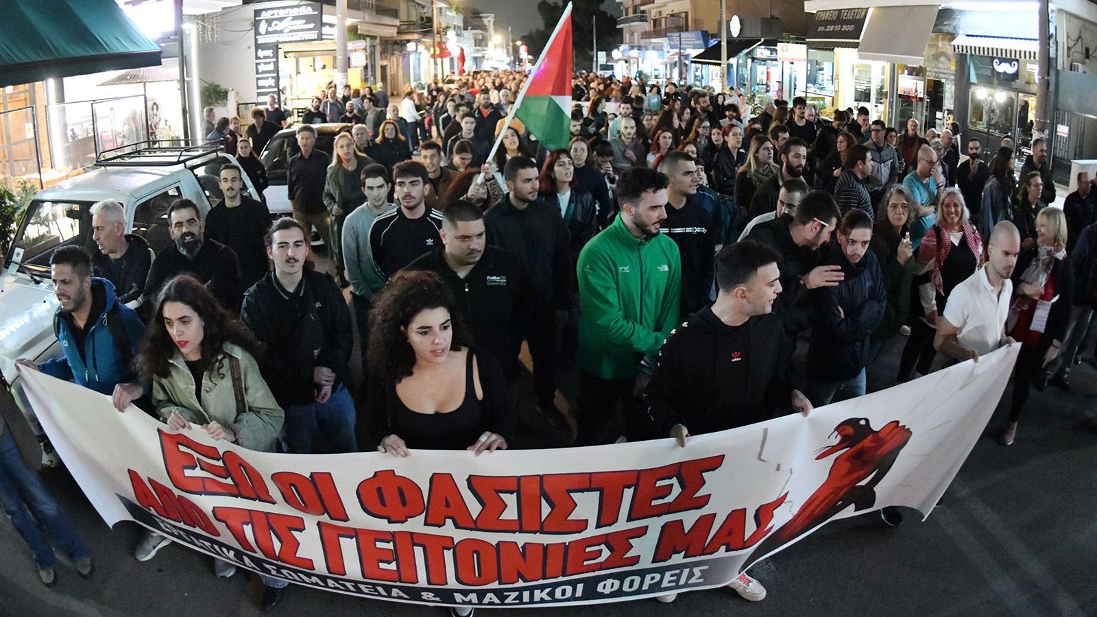 Bu eylem, suç örgütü olan Nazi yanlısı “Altın Şafak”ın Yeni Iraklio’da duyurduğu faşist buluşma vesilesiyle düzenlendi.